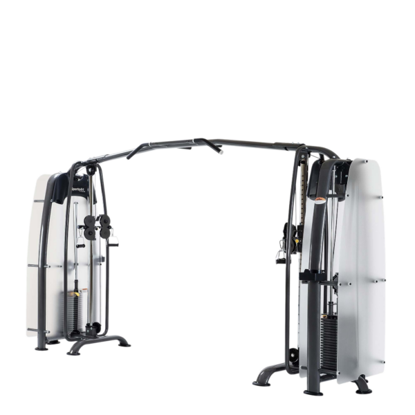 Два независимых вращающихся блока с вертикальной регулировкой позволяют задавать практически любую траекторию движения, что делает тренажёр универсальным инструментом как для силовых, так и для функциональных тренировок. Наличие 36 уровней регулировки обеспечивает точную настройку под индивидуальные задачи пользователя.